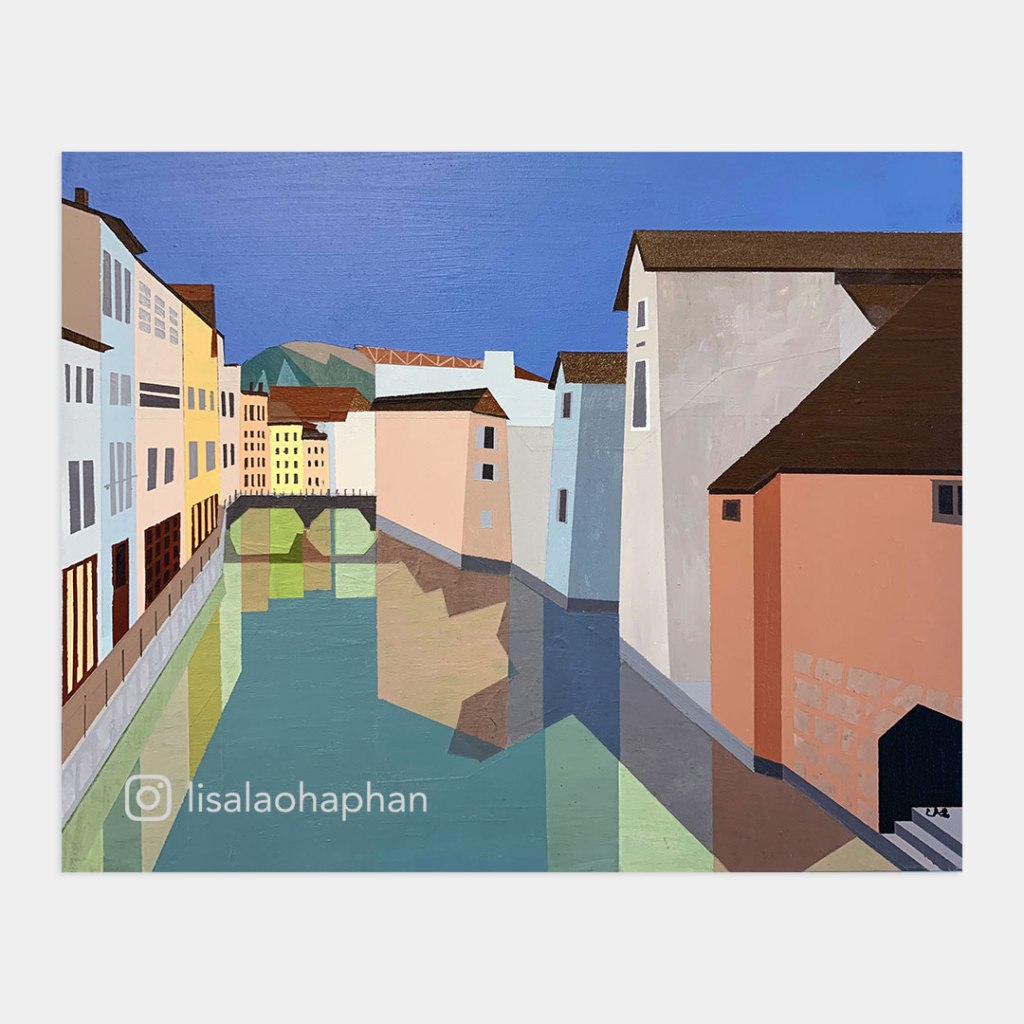 While her first painting was a challenge, she found it to be a welcome distraction from the pressures of a hectic work life. In 2015, Lisa showed her art publicly for the first time, participating in a regional art fair. Her work was well received and she sold most of her paintings. Encouraged, she continued to develop her skills and her individual style as a painter. Her time spent traveling Asia, the US, and Europe heavily influenced her view of the world and her art.